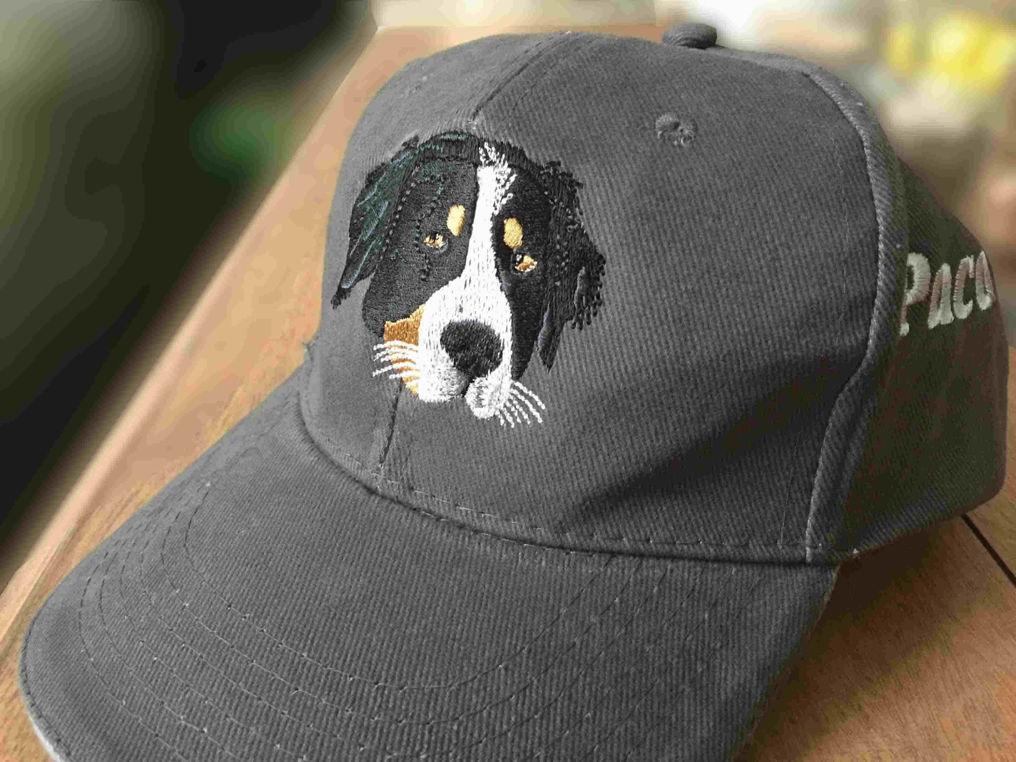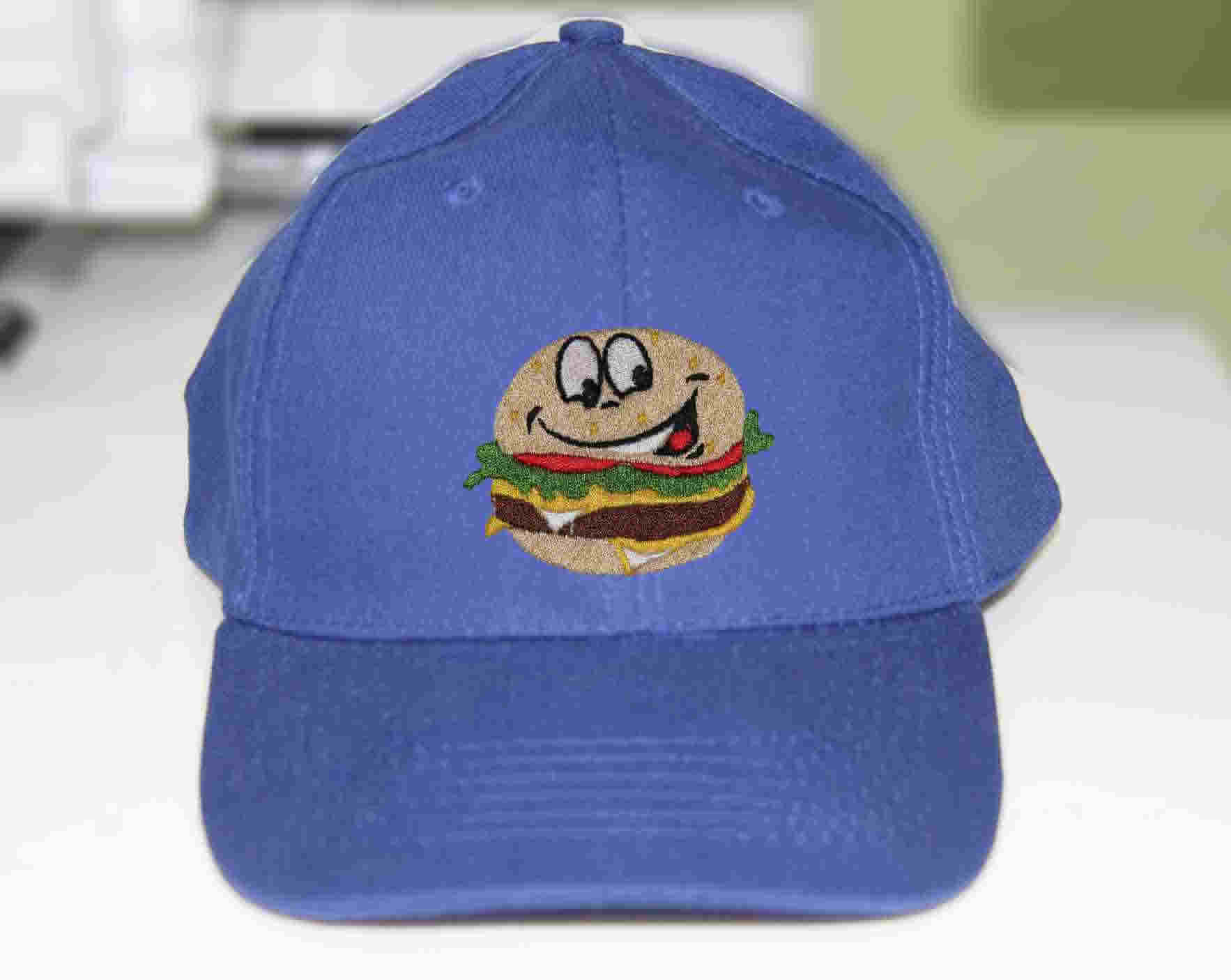 Baseball Cap´s können in einem Bereich von 360 X 79 mm bestickt werden.